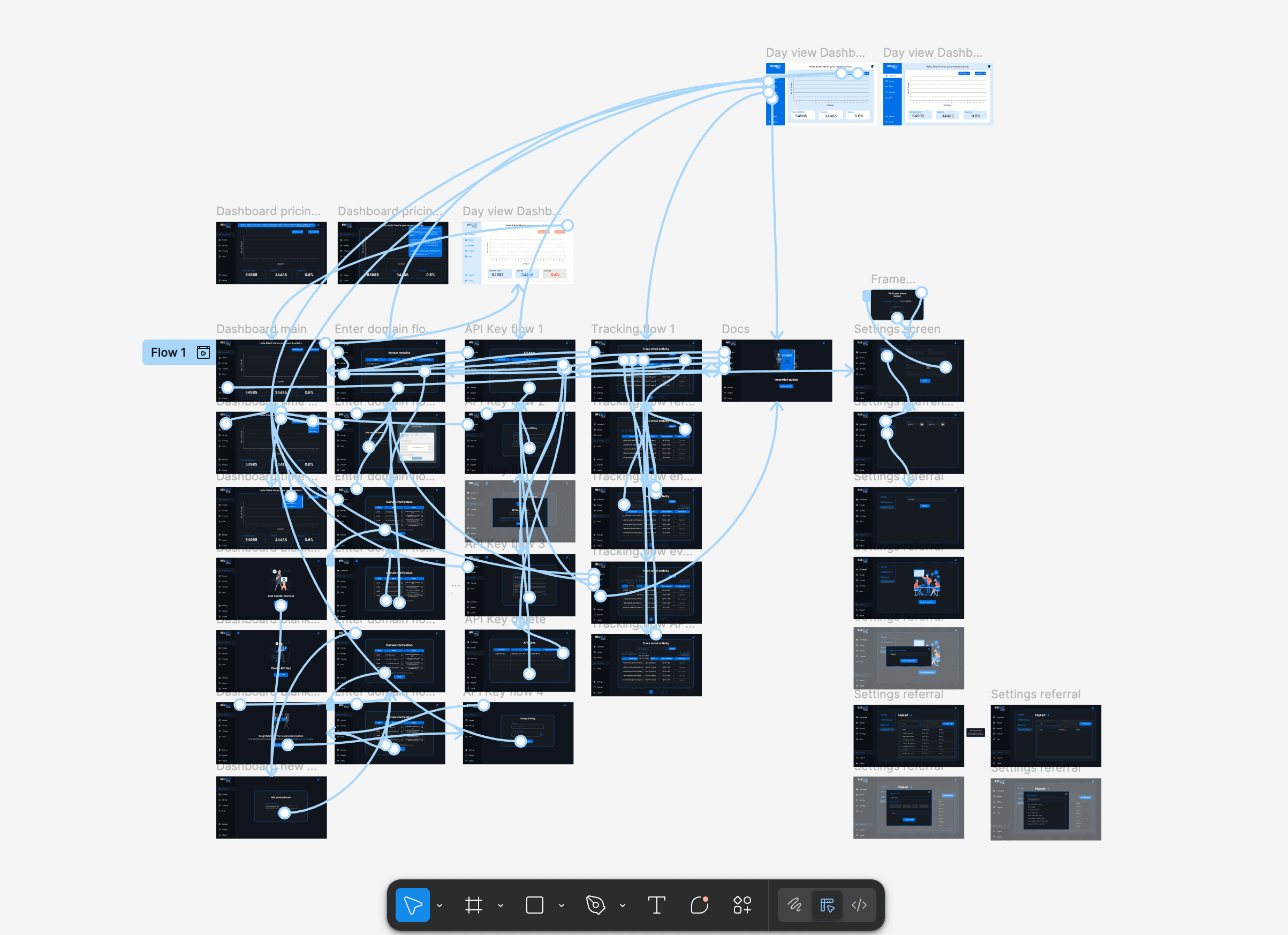 Prototyping: Designed a detailed, interactive prototype in Figma covering core user journeys, automation features, API onboarding, and dashboard functionality.
