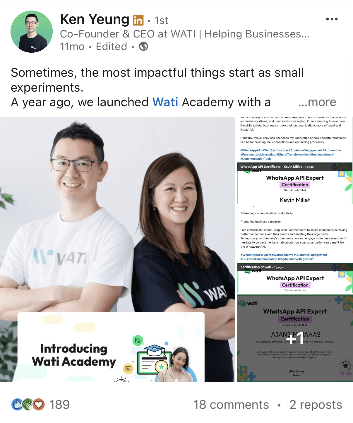 AI Video Pioneer: Used Heygen AI avatars for course presenters—adopted before it became mainstream, making Wati one of the earliest platforms with realistic AI avatars in e-learning.